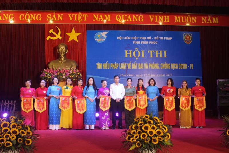 Sáng 17/6, Sở Tư pháp Vĩnh Phúc phối hợp với Hội Liên hiệp phụ nữ tỉnh tổ chức Hội thi “Tìm hiểu pháp luật về đất đai và phòng, chống dịch bệnh Covid-19” năm 2022. Tới dự và chỉ đạo Hội thi có đồng chí: Nguyễn Thị Thu Hà, Ủy viên BCH Trung ương Hội LHPN Việt Nam, Tỉnh ủy viên, Chủ tịch Hội liên hiệp phụ nữ tỉnh; đồng chí Hà Thái Nguyên, Phó Giám đốc Sở Tư pháp; Lãnh đạo Hội liên hiệp phụ nữ tỉnh, Lãnh đạo Hội Liên hiệp phụ nữ các huyện, thành phố; cùng 10 đội thi đại diện cho Hội phụ nữ Công an tỉnh và các huyện, thành phố trên địa bàn tỉnh.
